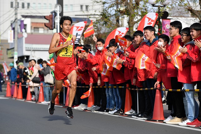 4区(16.8km)聞谷 賢人 46分47秒 区間5位 昨年に引き続き、今年も最長区間である4区を走りました。前半から果敢に攻めていけたのは収穫となりましたが、後半はストロングポイントである粘り強い走りをすることができず、失速してしまったのが課題として残りました。 この結果を受けて、ニューイヤー駅伝に向けてより一層質の高い練習をし、全国の実業団のエースと勝負ができる力をつけていきます。たくさんの応援ありがとうございました。 |