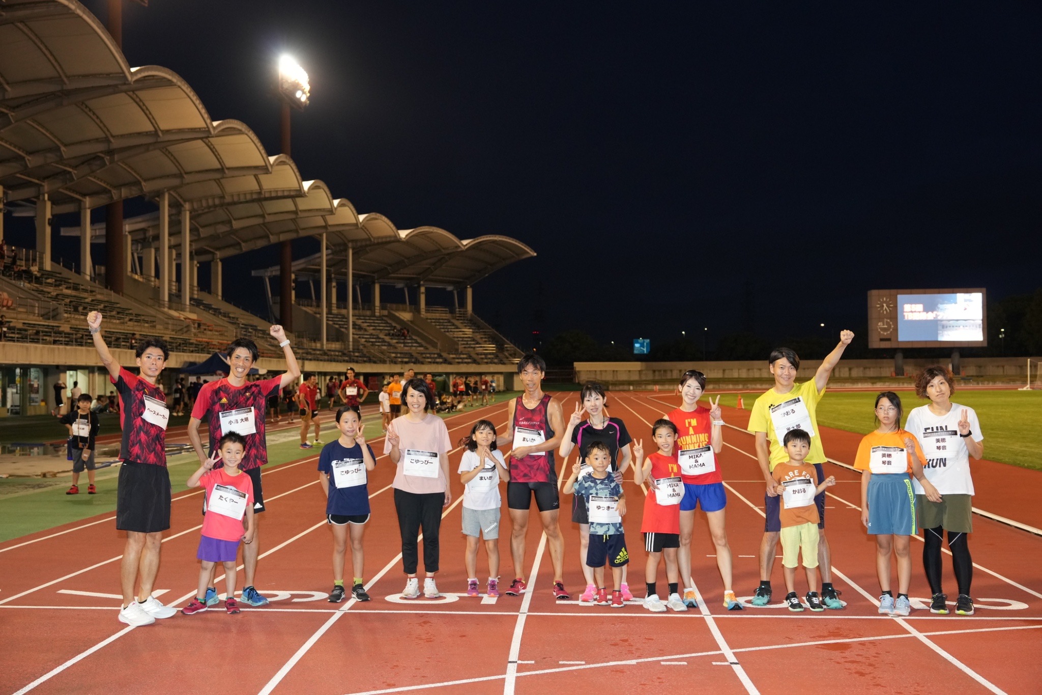 今年は初開催となる、陸上部を引退した様々な年齢層の方々を集め、OBスペシャルレース(1000m)を開催。