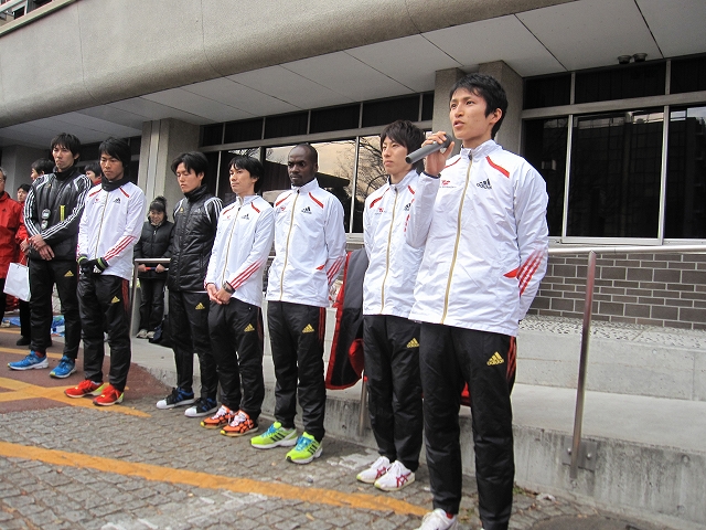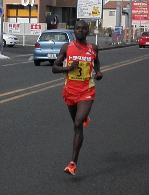 4区は各チームの外国人選手が顔を揃えるインターナショナル区間でミカ選手が出走。北京五輪代表で今季ロンドン五輪ケニア代表最有力のマサシ選手(スズキ浜松AC)が圧倒的な強さでトップに出ると、ミカ選手は付いていけず3位に後退してしまいます。