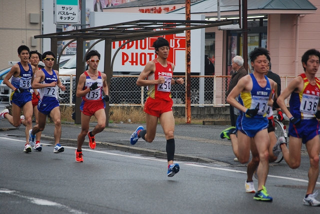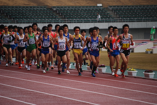 維新百年記念運動公園を一斉に駆け抜けていく選手たち