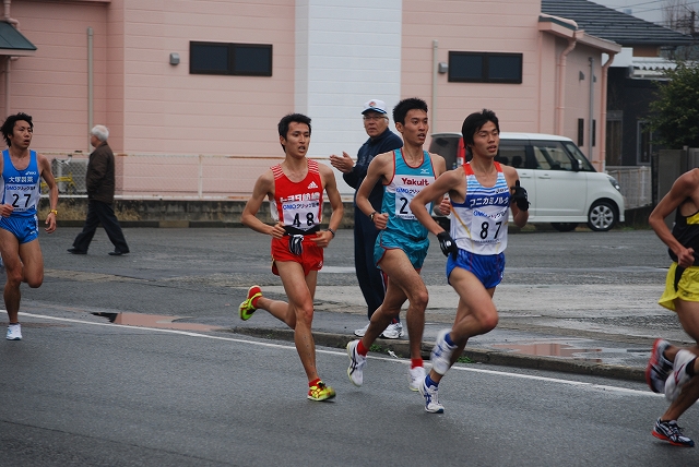 塩田、椎谷の2選手は集団の前方でレースを進めますが、中盤のペースの変動に対応できず少しづつポジションを下げて行きます。しかし最後は自己記録の更新に執念を燃やした塩田選手が1時間03分13秒の20位でゴール。少し遅れて自己記録には届きませんでしたが粘りを見せた椎谷選手が26位でゴールしました。