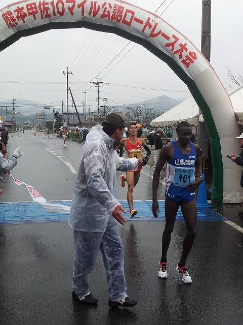 ラスト1km地点では国際競技者の部のオムワンバ選手(山梨学院大)との一騎打ちとなります。
