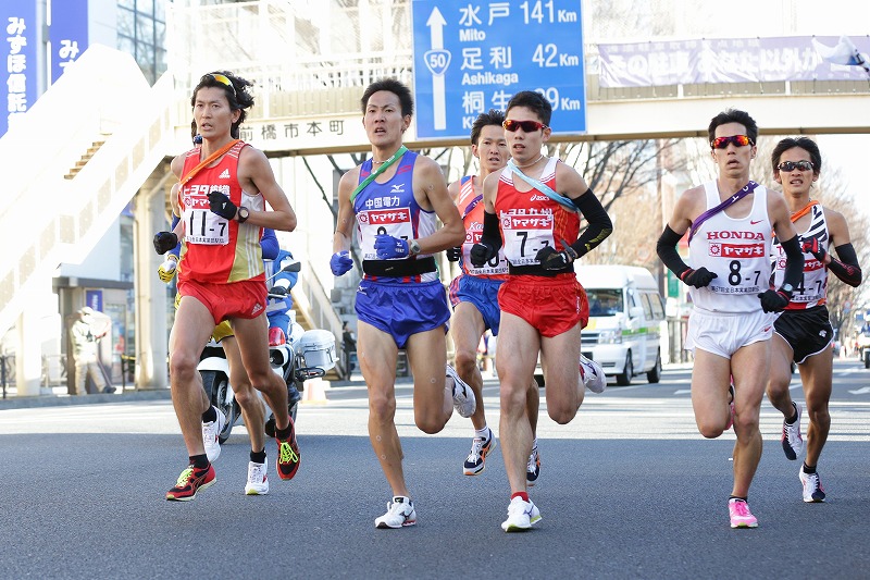 7区中盤、2位~6位のチームが一つの集団になると各チーム牽制しあいペースが上がらず、先頭コニカミノルタはトップ独走態勢に、2位集団はラスト勝負の様相となります。ラスト1km地点ではペースが落ちた2位集団に後方集団から追いついてきたSUBARU、トヨタ自動車も合流し7チームによる入賞争いは最後の最後までわからない混戦模様。