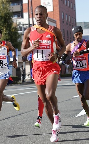 最短区間の2区は各チームの外国人選手が集結し追い風を受けて熾烈なスピード争いとなりました。序盤からハイペースで前を追うパトリック選手は同時に襷を受けた選手らを振り切ると、前を行くトヨタ自動車に2秒差まで詰め寄る快走。初のニューイヤー駅伝となったパトリック選手でしたが見事区間賞を獲得しチームに勢いをつけました。