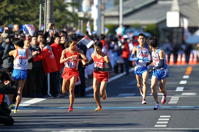 後ろからきたコニカミノルタ(宇賀地選手)とトヨタ自動車九州(今井選手)にはかわされたものの、最後まで食らいつく粘りを見せ先頭から2秒差の3位で5区へと中継。