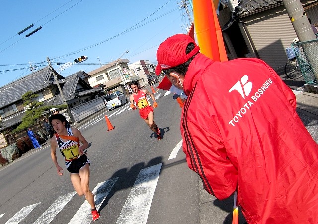 パトリック選手は思うように体が動かず苦しい走りとなりましたが、序盤で先頭に立つと2位に順位を上げたトヨタ自動車も10秒離しトップで5区へとタスキを繋ぎます。