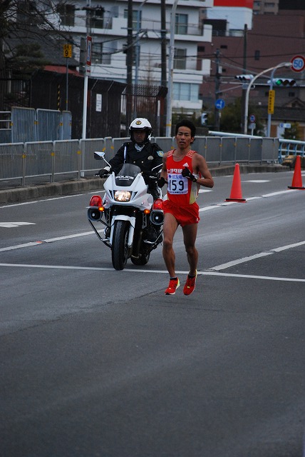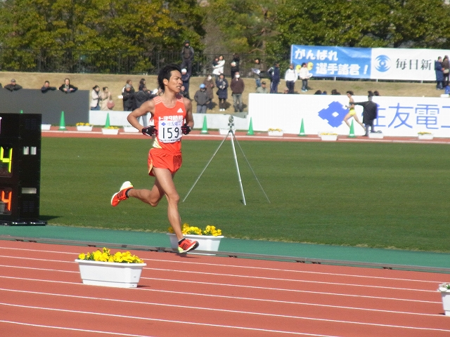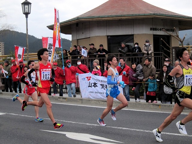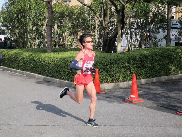 折り返しを過ぎるとやや疲れの見え始めた山本選手も先頭から遅れ始めますが表情にはまだ余裕があり、ペースを落としながらもリズム良く自己記録の更新を目指します。