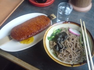 途中、昼ご飯には設楽町にある「八雲苑」というお店に寄り、五平餅と蕎麦を食べました。