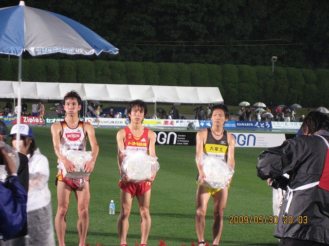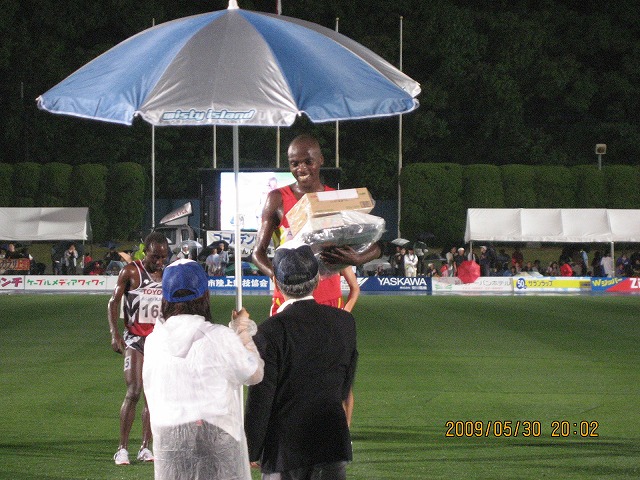 大会当日はあいにくの雨でコンディションの悪い中、E組出場のミカ・ジェル選手、中尾選手が自己記録を更新しました。ミカ・ジェル選手はE組の優勝で今回大会の最高タイムとなる13分22秒20をマークしました。D組に出場した塩田選手も久々に自己記録を更新する走りを見せ今後の大会に期待を膨らませる結果となりました。