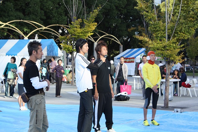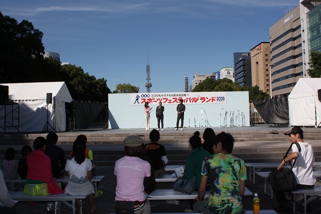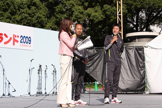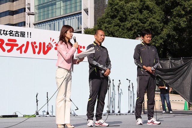 10月11日(日)名古屋・久屋大通公園にて開催された、「名古屋スポーツフェスティバルランド2009 ~ココロもカラダも元気な名古屋!~」に当社陸上部の亀鷹総監督と佐藤監督がトークショーに出演しました。