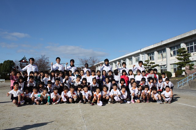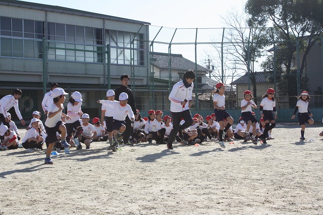 11月28日(月)、12月5日(月)の2回に渡り、愛知県豊田市立伊保小学校にて陸上クリニックを行い、トヨタ紡織陸上部の選手とスタッフが講師として参加しました。両日とも天候に恵まれ、学校内のマラソン大会を控えた1年生と2年生、3年生と4年生、5年生と6年生、3つのグループに分かれ、全校生徒200名以上の児童達とともに汗を流しました。