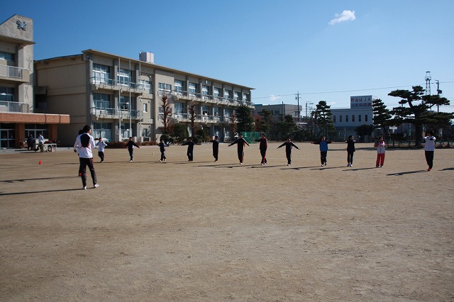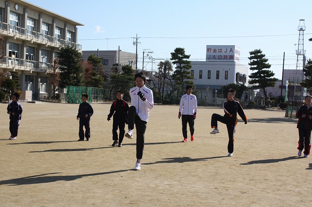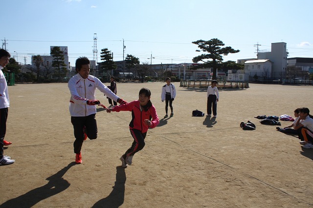 1月7日(土)、愛知県岡崎市立矢作南小学校にて陸上クリニックを行い、トヨタ紡織陸上部のスタッフが講師として参加しました。駅伝大会を控えた5年、6年生の生徒11名とともに動きづくりや駅伝リレーなどを一緒に行い、和気藹々とした雰囲気でクリニックを終えることができました。
