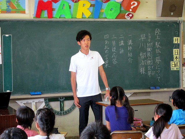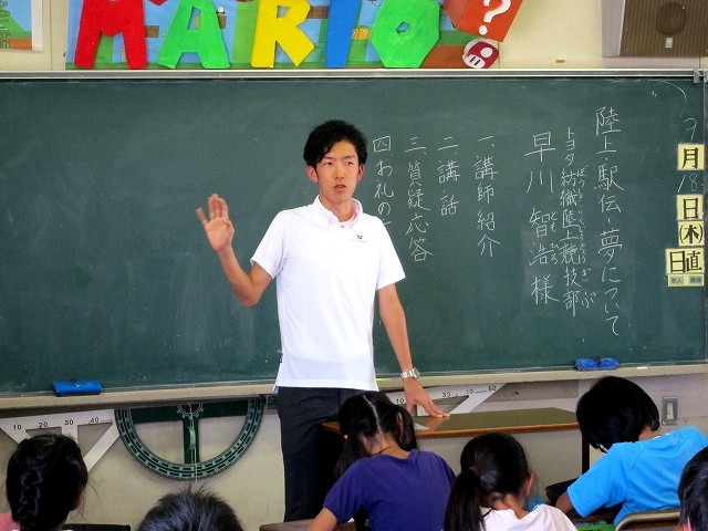 9月18日(水)、岡崎市立福岡小学校で開催された「陸上、駅伝、夢についての講演会」の講師として地元愛知県岡崎市出身の早川選手が参加しました。この会は小学校5年生を対象に、「夢に向かって頑張る人の努力、経験を通じて、自分の夢に向き合うきっかけをつくる」ことを目的に開催されました。