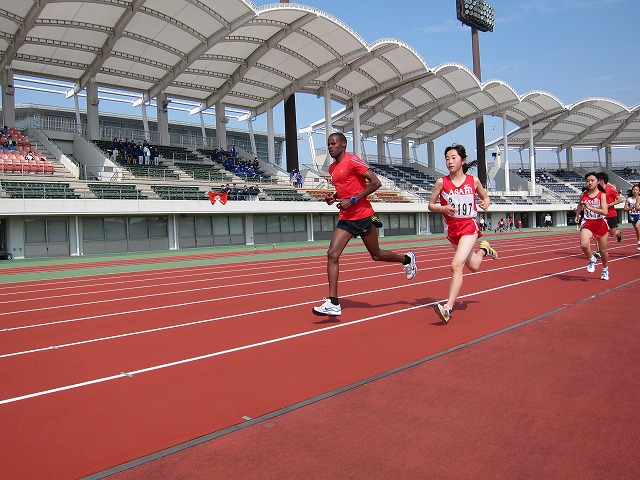トヨタ紡織陸上部マネージャーの畑田直樹です!3月25日(火)、陸上部が練習で使用しているウエーブスタジアム刈谷でKCAC交流陸上大会が開催され、榎木監督、渡邉コーチ、白栁選手、塩田選手、ムトゥンガ選手がゲストランナーとして参加しました!全員で中学生女子の800mと中学生男子1500mに出走し、出場した中学生のみんなと交流を深めました!